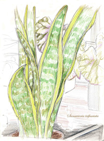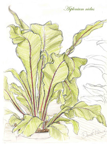 Asplenium nidus, Begonia, Guzmania, Honeysuckle, Ivy, Passionflower, Peace Lily & Sansevieria trifasciata