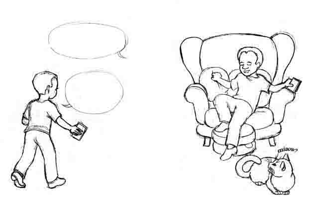 Malcolm went back inside the house to his armchair.