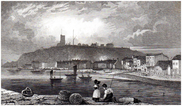 Folkestone Harbour drawn by George Shepherd, published in 1829